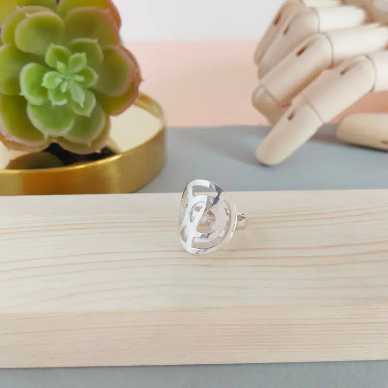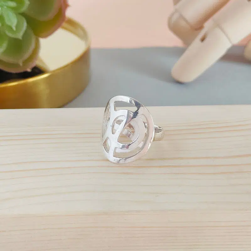 Anillo realizado en plata de primera ley. Mide 21mm de diametro. Acabado brillo y mate.Hacemos el anillo en cualquier medida si no encuentras la tuya en el desplegable. Escribenos y lo hacemos.
