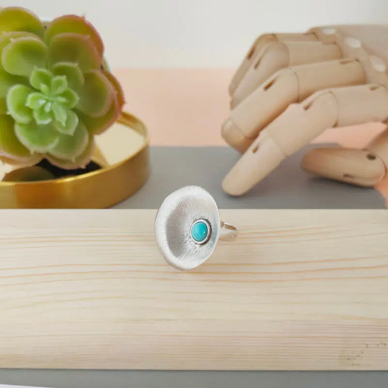 Anillo realizado a mano en plata de Primera Ley y turquesa reconstituida.