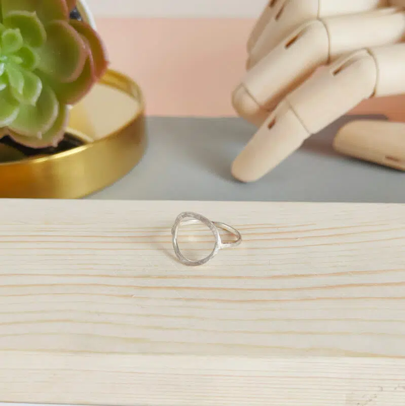 Este anillo ha sido realizado a mano en plata de primera ley con acabado mate martelé.