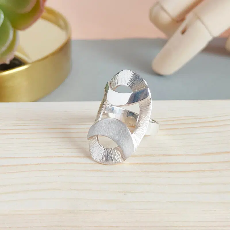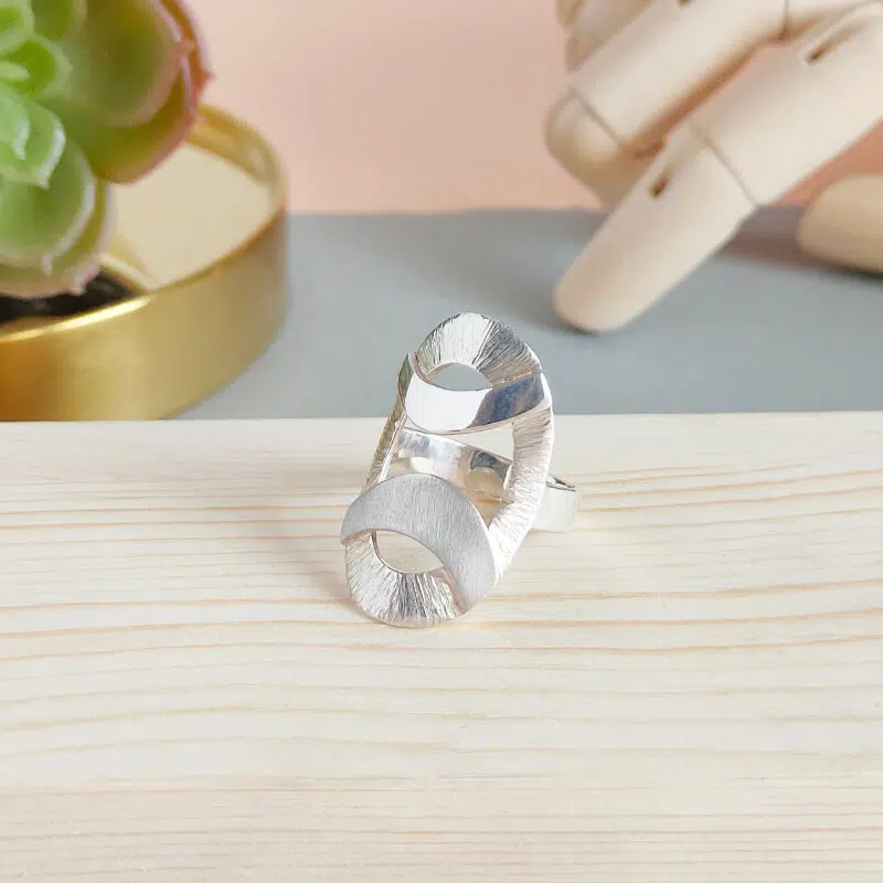 Anillo realizado en plata de primera ley. Mide 30mm x 20mm. Acabado brillo y mate.Hacemos el anillo en cualquier medida si no encuentras la tuya en el desplegable. Escribenos y lo hacemos.