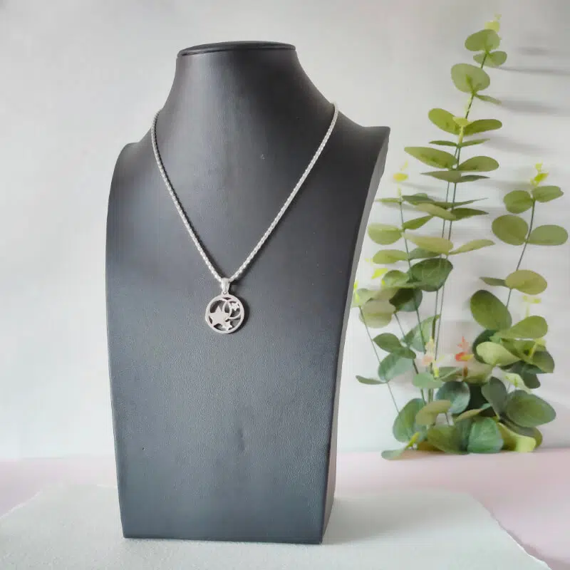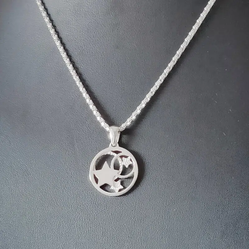 Colgante realizado en plata de primera ley. Mide 22mm de diametro. Acabado mate y brillo. La cadena se vende por separado.