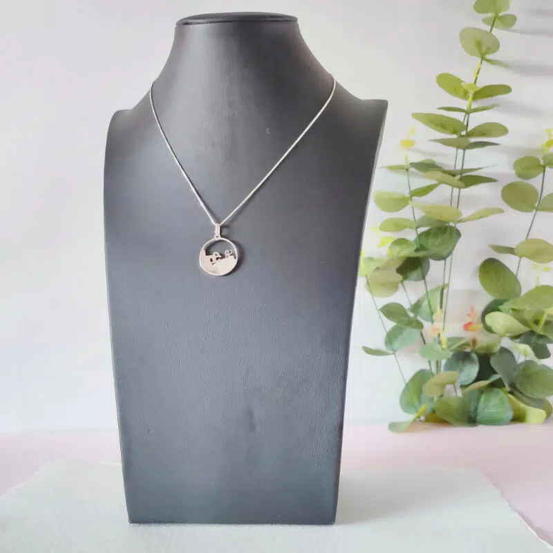 Colgante realizado a mano en plata de Primera Ley, e inspirado en el Peine del Viento de Donostia, para que aquellas personas amantes de la ciudad, puedan llevar siempre un pedacito de ella.
