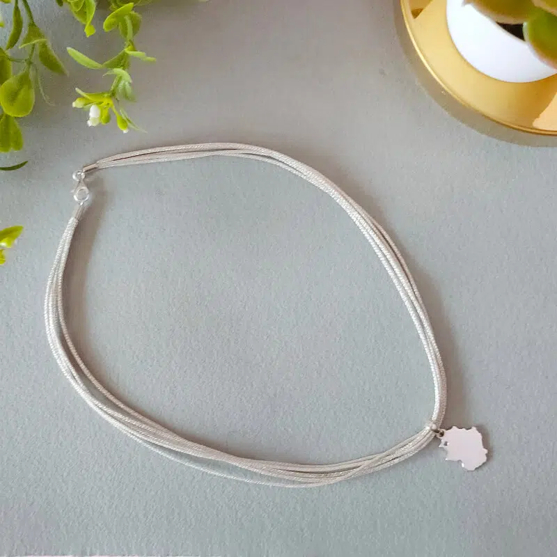Cordón en seda japonesa de 5 hilos en 40cm de largo. Terminal y cierre de plata.