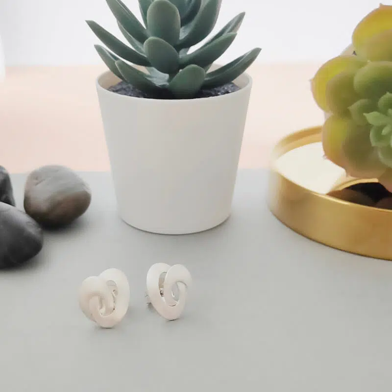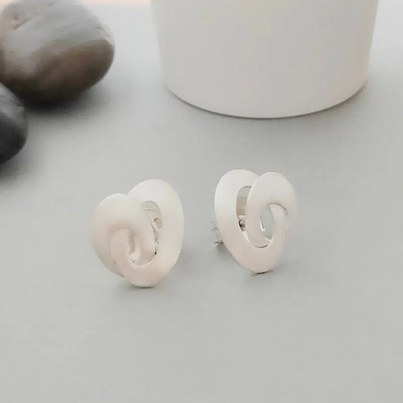 Pendientes realizados en plata de primera ley. Cierre de presión. Miden 18.50mm de largo x 15.50mm de ancho. Acabado mate.