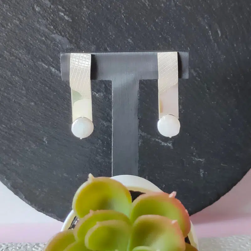 Pendientes realizados en plata de primera ley y perla cultivada en agua dulce Son desmontables, pueden llevarse las dos piezas o solo la delantera. Cierre de presión. Miden 50mm de largo x 11mm. Acabado mate y brillo.