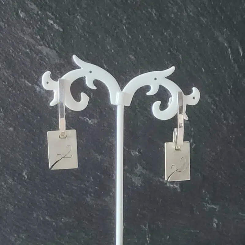 Pendientes realizados en plata de primera ley. Cierre de presión. Miden 40mm de largo x 13 mm de ancho. Acabado mate y brillo.