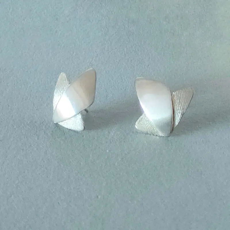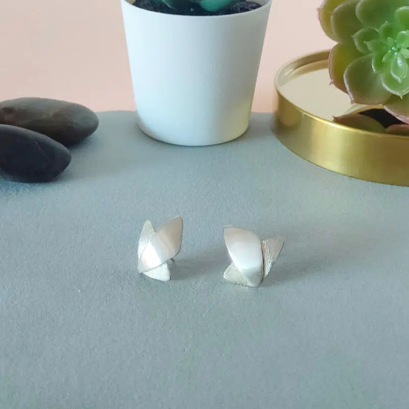 Pendientes realizados en plata de primera ley. Cierre de presión. Sus medidas son de 21mm x 21cm. Acabado mate y brillo.