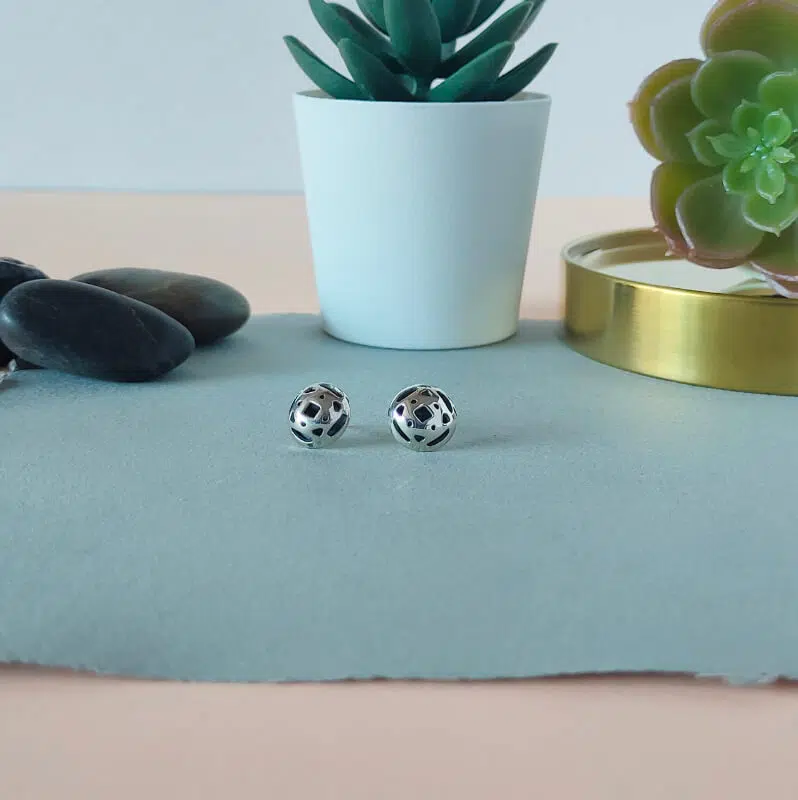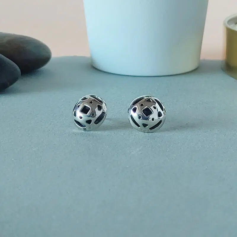 Pendientes realizados en plata de primera ley. Cierre de presión. Sus medidas son de 12cm de diametro. Acabado brillo oxidado.